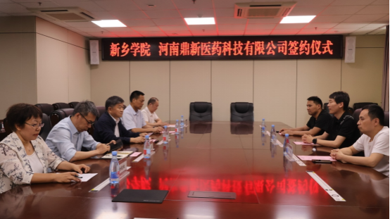 5月28日,我校在行政楼928会议室举行了与河南鼎新医药科技有限公司合作协议签约仪式。校长王孝俊出席仪式并致辞,副校长陈磊山,拓新集团总裁杨邵华、副总裁李涛,河南鼎新医药科技有限公司总经理马冠军,科研处处长赵磊以及9428cn太阳集团古天乐全体班子成员参加签约仪式,仪式由9428cn太阳集团古天乐党委书记骆云飞主持。