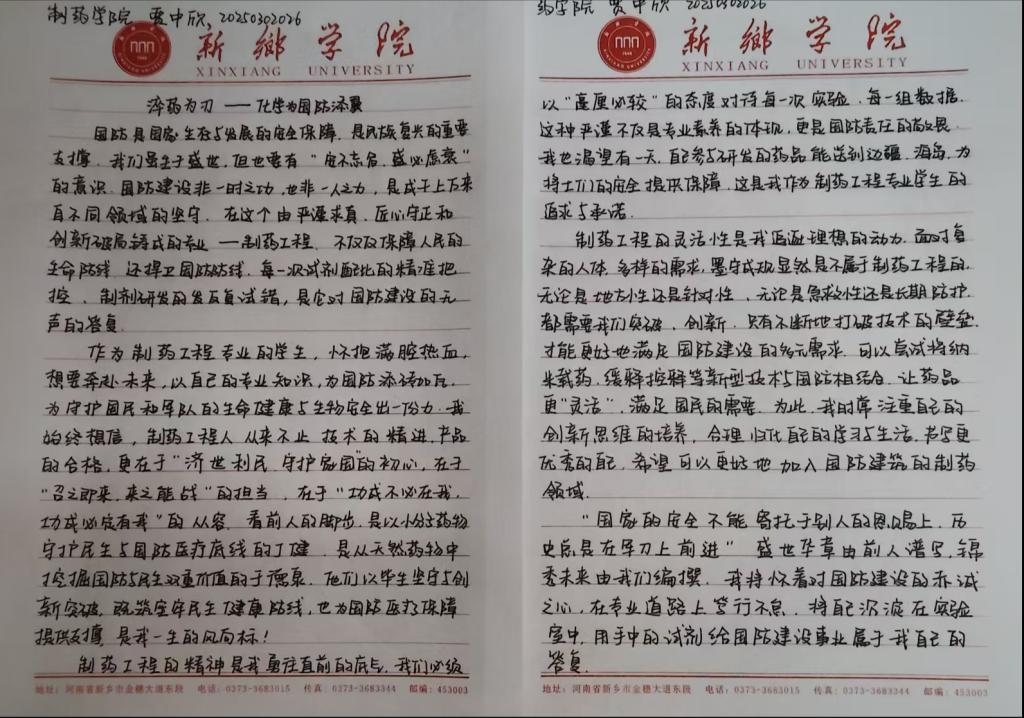 部分参与者结合自身所学专业,通过手抄报的图文创意形式直观呈现专业技术在国防领域的多元应用,成为“专业赋能国防”理念最生动、最直观的宣传载体。其他同学通过征文这一表达形式,阐述专业学习与国防责任的内在关联,分享对青年以专业所长助力国防建设的思考与感悟,字里行间既有对专业知识的深刻理解,更有对家国担当的赤诚坚守。